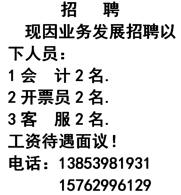 金马物流 诚招叉车工一名,开票员两名。